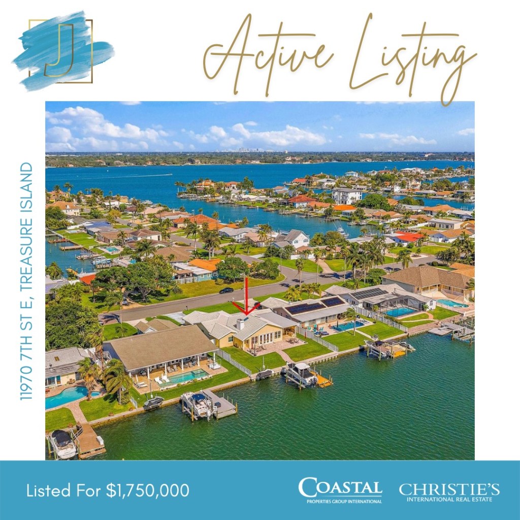 This is a wonderful opportunity to acquire this 3 bedroom, 2.5 bath home, (2, 562 heated sq/ft) on 75 feet of prime waterfront footage in Treasure Island, FL. This immaculately presented home boast a double-door entrance to a beautiful-well maintained home that includes vaulted ceilings, travertine floors, storm sliding doors & windows and spectacular views. The hub of the home is the open-plan kitchen and living area. The vaulted ceiling with skylights enhances the spacious look of the free-flowing living area with water views across the entire back of the home. You will love the electric window treatments that include the skylights. The gourmet kitchen is beautifully appointed with sleek cabinetry, granite countertops, stainless steel appliances and bench seating. Next to the kitchen is an intimate dining area to entertain your friends and family. The formal living area is utilized for more entertainment with a pool table currently in place. The master bedroom and en-suite are a place to retreat, reflect & rejuvenate. The master includes water views, dual closets & backyard access via the sliding doors. The second & third bedroom are both comfortably sized with plenty of closet space with a full bath in between. The picture postcard backyard features western exposure for gorgeous sunset views. Outside you will find a well-manicured lawn, smart home irrigation system, outdoor kitchen, 2018 seawall, 15, 000 lb boat lift, jet ski lift and relaxing views. Plenty of room to add a pool. You will enjoy the exotic shorebird visits, dolphin & manatee swimming by. Two car garage that includes electric car charging! This home is Florida living at it’s best with quick boat access to the Gulf of Mexico via no fixed bridges or a short bike ride to Treasure Island Beach and Boardwalk to enjoy the sunset. Close to shopping, restaurants, recreation, professional sports & two international airports. A beautiful island sanctuary perfectly suited to a relaxed lifestyle. Arrange your viewing today!