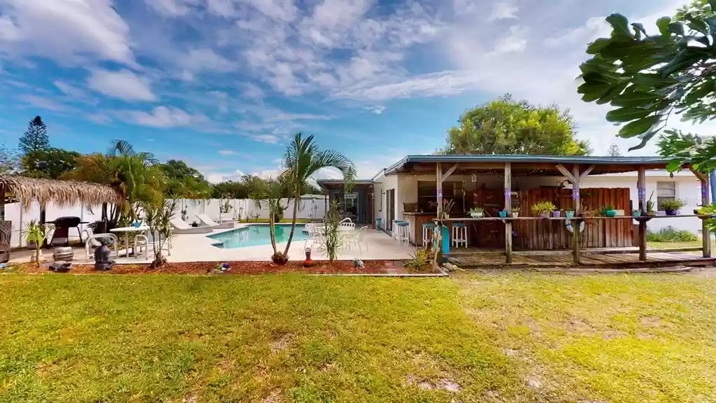 New on the Market Rare Find. Nearly 1/3 acre Lot. Welcome to the Key West Laid Back Island lifestyle on coquina Key Island. Located on Coquina Key Island where the Dakota Indigenous roamed. This home reminds you of Key West with its Back Yard Tiki Bar overlooking and Beautiful Pool with Tiki Cabana for enjoying with your guests. There is even an Outdoor Bath with Shower. 4 Bedrooms and 2 baths indoors and and additional full bath outside for your pool and Tiki bar guests. This Home features elevated beamed ceilings in the main living area and open floor plan you will enjoy. Plenty of parking for guests on the oversized parking pad. You are sure to appreciate the more than 2344 sf of living space and the outdoor space lives large too.