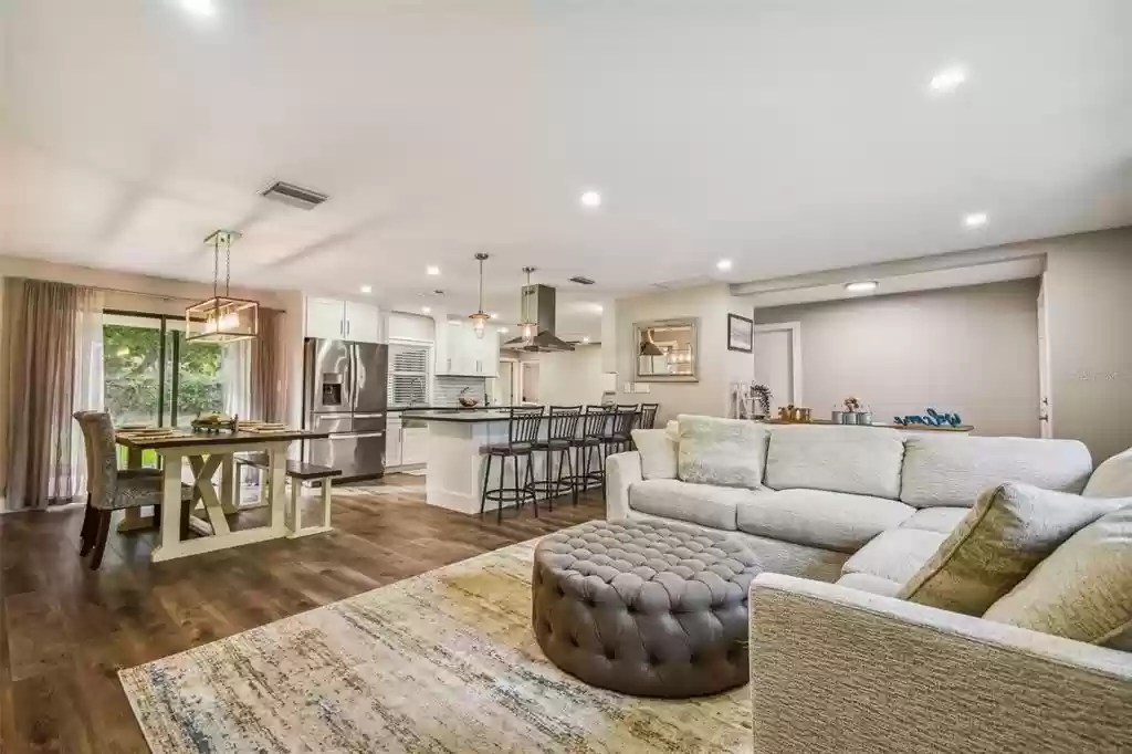 Lake Park Estates Beauty! This amazing property features four bedrooms, two baths, and over 1900sf of living space. The large backyard has plenty of room for a pool and would make a fantastic entertainment space with no rear neighbors. Luxury vinyl plank flooring throughout the open concept floor plan allows each room to flow spectacularly to the next. The expansive and updated kitchen overlooks the living room and is complete with a stainless-steel farm sink, leathered finish granite countertops, a built-in bar fridge, and a large pantry closet. The bedrooms are arranged in a split floor plan and are all generously sized. There is private access to the backyard from the cozy master suite. The screened-in back porch was just recently rescreened and has two access points via slider doors from the interior of the home. It’s truly the perfect place for a cup of coffee in the mornings or a glass of wine in the evenings! No popcorn ceilings here as all of the interior ceilings have been retextured. New roof installed January 2019, new HVAC and ductwork in February 2021, and a new electrical panel in March 2021. Lake Park Estates is a beautiful neighborhood centrally located in Pinellas County and DOES NOT require flood insurance! Close to shopping, restaurants, places of worship, and our beautiful beaches, this one truly checks all the boxes. Schedule your appointment today!