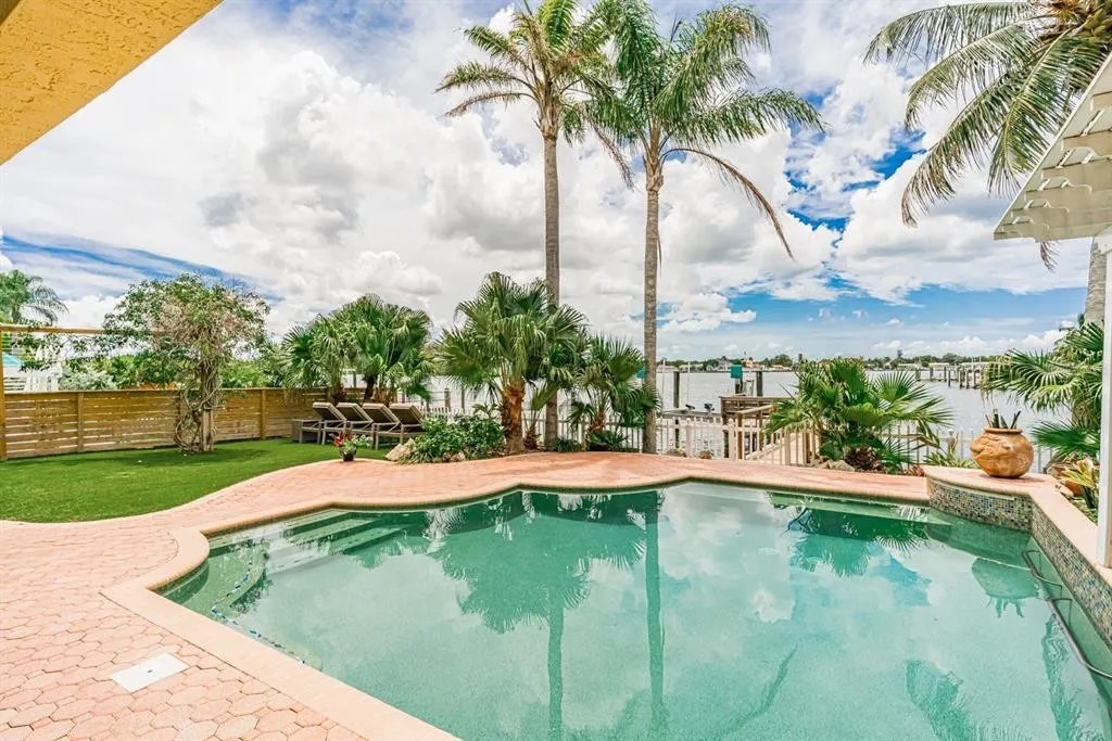 Welcome to the spectacular Ohana House. The Hawaiian name “Ohana” says it all, which means family. Whether you are purchasing this home for your family as your forever home or as an investment property for many families to enjoy, you will fall in love with this gorgeous Indian Rocks Beach home directly on the Intracoastal Waterway! This light and bright 4 bedroom/4.5 bath, fully furnished pool home is walking distance to the Gulf of Mexico. Masterfully designed to optimize its water setting and panoramic Intracoastal views, the 3,390-square-foot home features a temperature-controlled pool and custom brick paver deck, along with coastal, stylish interiors. Tile floors run throughout the home with beautiful, engineered wood flooring in the bedrooms. The spacious kitchen is great for entertaining with a quaint breakfast nook and a large dining area for all occasions. The kitchen includes all stainless appliances, granite countertops, oak cabinetry, recessed lighting, tile backsplash, and stainless-steel sink. The open floor plan has two living areas, one great for a media area and the other one has a beautiful coastal designed fireplace. There are 4 bedrooms and 4.5 baths total which is perfect for large families or vacation rental for friends and family. On the ground floor is one bedroom and full bath, a bathroom off the living area for guests, and a half bath off the lanai and pool area. Moving upstairs you will find two bedrooms with a jack and jill bathroom and the master suite. Two of the bedrooms open to a balcony overlooking the pool and dock area on the Intracoastal. The master bedroom also features an ensuite bathroom and a bonus room for exercise equipment, nursery, or crafts. All upstairs bedrooms have amazing water views of the intracoastal and pool area. The screened lanai stretches the length of the breakfast nook and family room with two doors leading out to the pool area. This property has a private dock with boat lift that accommodates a boat up to 10,000 lbs. The Intracoastal has nearby inlets to the Gulf of Mexico both North and South from this property. There is also a set of steps from the dock down to the water for easy kayak launching. The double driveway provides ample parking spaces for multiple vehicles. Further upgraded features include Roof 2020, AC Blower 2022, Hot Water Heater 2019, Dock 2018, Aquacal Pool Heater/Chiller 2021, Boat Lift 2021. This property is located near restaurants, great shopping, grocery stores, pharmacies, liquor stores and fun tourist excursions. This home could be your personal residence, full-time or part-time, or rental investment This Ohana House is a true beach getaway and has it all, so schedule your showing appointment today and live where others dream of vacationing!