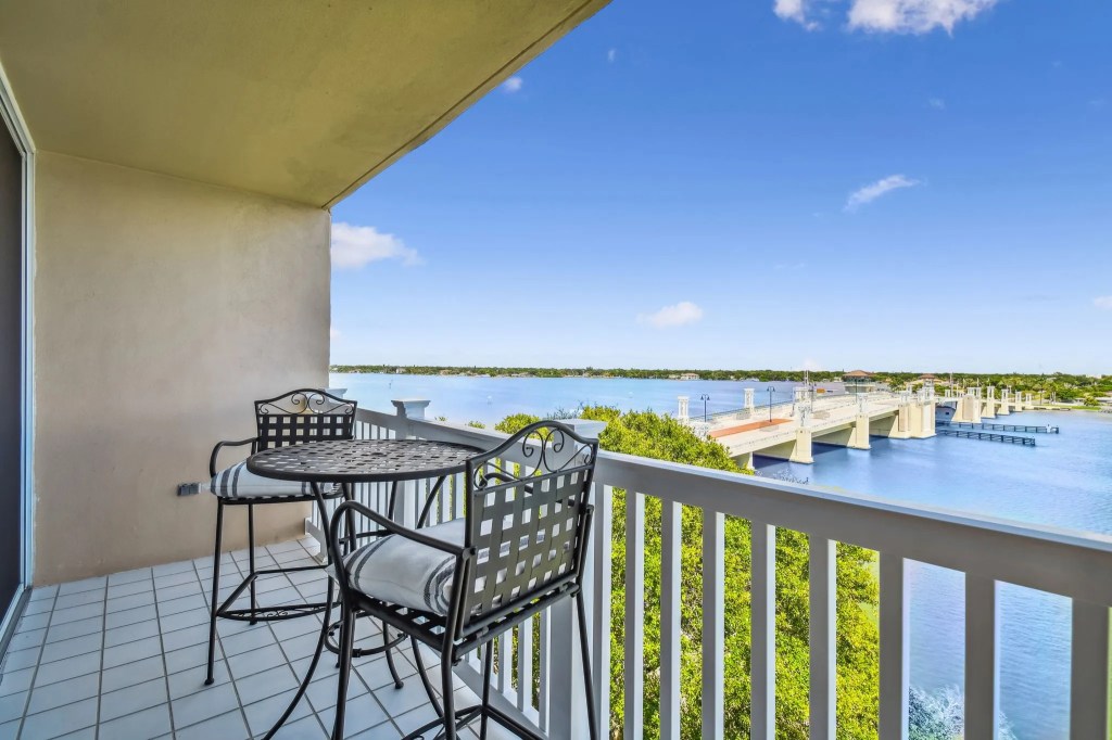 This must-see RARE WATERFRONT CORNER UNIT at The Treasure Island Tennis and Yacht Club has stunning views from almost every room. Originally a 2 bedroom unit, it was converted to a uniquely stunning and spacious 1 bedroom unit. If desired, owners will convert the unit back to 2 bedrooms with acceptable offer. Large NEWER Hurricane rated windows and sliders updated in 2018 make this unit light and bright. This condo has been immaculately maintained and is move in ready. Washer and Dryer are conveniently located inside the unit. Enjoy extraordinary sunrises and moonrises from your private balcony. The building has a beautiful lobby with secured access and ELEVATORS. Reserved parking spot with guest parking available. The Club at Treasure Island is open to the public. In just a few steps across the parking lot you can enjoy their large heated pool, cabanas, Tiki bar and waterfront dining. Boat slips are also available for rent (Contact The Club directly for fees and availability if interested). This unit is also a short walk to the Treasure Bay Golf and Tennis facility offering a 9-hole golf course, asphalt and Har-Tru clay tennis courts, volleyball, pickle ball, waterfront picnic pavilions, a playground and more. If you are looking for a maintenance free lifestyle with a short walk/bike to amazing beaches, restaurants, entertainment and shopping then this is the place for you. Outstanding value for a waterfront property with so much to offer.