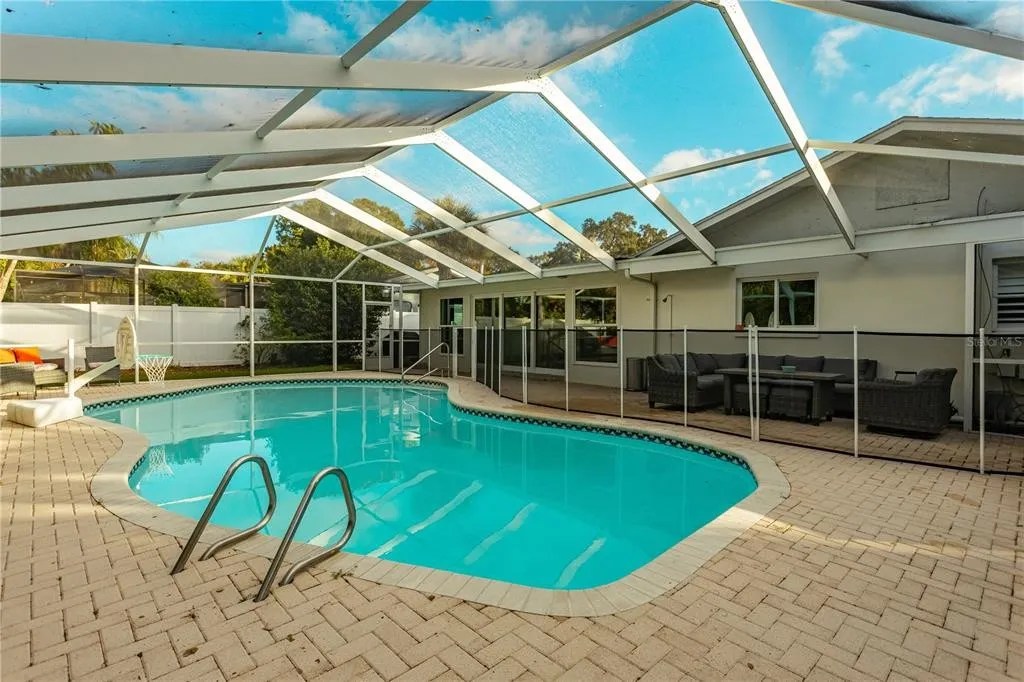 If your New Year’s resolution is to live in a beautiful, updated home in a much sought after neighborhood then THIS home is for you. It is move in ready and has been completely renovated. As you pull up you will notice the mature trees and flowering bushes. Follow a pavered driveway and walkway to a solid wood double door entrance. Once inside you immediately notice the open feel of the large living area. Beyond the kitchen and living room you can see the welcoming pool area just through the large, glass triple sliders. So perfect for entertaining in the screen enclosed area. The kitchen has solid wood cabinets with an elegant quartz counter top. Complete with a large peninsula with plenty of space to sit. All appliances are stainless steel. The beautiful quartz also continues over to a separate cocktail / coffee bar area. Complete with its own designer cabinetry and wine fridge. The living room has a custom built electric fireplace, with a mantle perfect for hanging Christmas stockings. The entire living area has waterproof luxury vinyl flooring. New doors, ceiling fans, light fixtures, baseboards and wood crown molding throughout the home. All new A/C ducts. Plantation shutters on most interior windows adds to a simple elegance. Wow the master bathroom is large. It has a custom built double vanity, a separate make up vanity, a glass enclosed shower with built in bench and a jetted soaker tub to relax in. For privacy the toilet is in its own water closet. The master bedroom has a walk in closet and a private office area. The home also offers a two car garage with plenty of room to park your vehicle. The artificial turf in the backyard makes yard work effortless. With a location close to Gulf Beaches and the new Seminole City Place , this home will not last. Call and make an appointment to see it before it is gone.