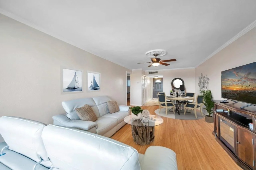 One or more photo(s) has been virtually staged. Do you want to watch the sunrise (if you’re up) and the sunset every evening without even going outside? Here is your chance! Come see this pleasant TOP FLOOR unit in the heart of sparkling Clearwater! This home has tile and wood flooring throughout, newer appliances, kitchen cabinets and granite counter tops, newer bathroom vanity, cabinets and shower door! There is crown molding and new paint throughout, the popcorn ceiling and some doors have been replaced. There is an enclosed balcony overlooking the complex pool, and even a small seating area out the front door! Make your northern friends jealous of where you’re living now, without having to spend every dime of your savings!
