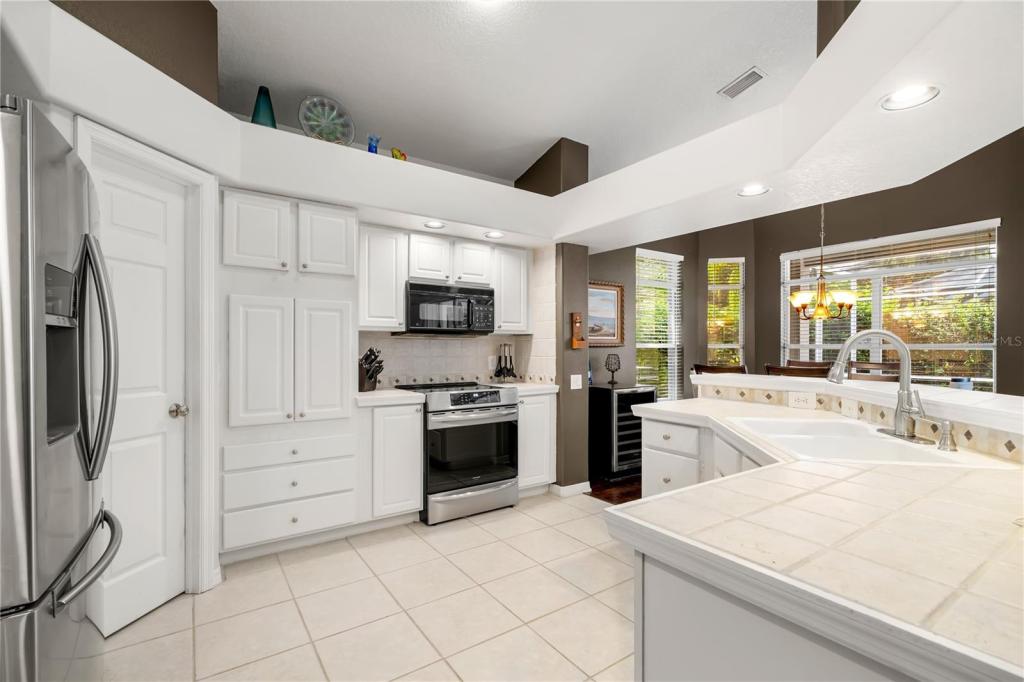 Welcome home to this nicely updated 3 bed, 2 bath PLUS den home in the wonderful Golfside community of Lansbrook! ROOF is only two years old (2020)! As you come up the front path and step inside the beautiful leaded glass front door, you will be greeted by an open living room with stunning dark tile wood-like flooring. In addition to coffered ceilings, there are beautiful architectural details as well as three large windows that allow in ample light and make the space nice and bright. Off the living room is a very private den, which could easily be converted into a fourth bedroom. Head to the back of the home to the massive great room, which boasts an open kitchen, dining room, and large family room. With beautiful high volume tray ceilings, plus abundant built-ins and niches, this space is perfect for all of your entertaining needs. The kitchen has white cabinetry, stainless steel appliances, and a great pantry closet. There is also a large breakfast bar space that can fit at least four seats. The dining space has a lovely bay window and hanging light fixture. Off the family room are sliders that open to the oversized screened in Lanai, which is very private and perfect for enjoying the Florida weather. Back inside off the family room is your double door entry to your wonderful master suite oasis. There are sliders to the Lanai for private access from your master, and there is a lovely ensuite bath complete with a jacuzzi tub, separate oversized step-in shower, a dual sink vanity with storage, and a large walk-in closet with built-ins. As you cross back through the family room to the front of the house, you will find the other two bedrooms and full bath. The full bath is nicely updated and has a tub/shower combo, and both bedrooms have large windows and generous sized wall closets. Off the hallway is a linen closet and the laundry room, which has a large storage closet and is ample in size. Through the laundry room you can access the two plus car garage. Additionally, the house is set-up for a seven zone speaker system that will remain and there is HDMI cable throughout the house as well. This property has beautiful architectural features and ample built-ins throughout; this home truly has it all in a great location. You are close to everything, but feel so removed from the everyday hustle and bustle. With the local YMCA nearby with a pool and all kinds of wonderful opportunities for membership, plus the fantastic Waterfront community amenities in Lansbrook, your options for activities are endless! You do not want to miss the opportunity to make this home yours. Come and see it today!