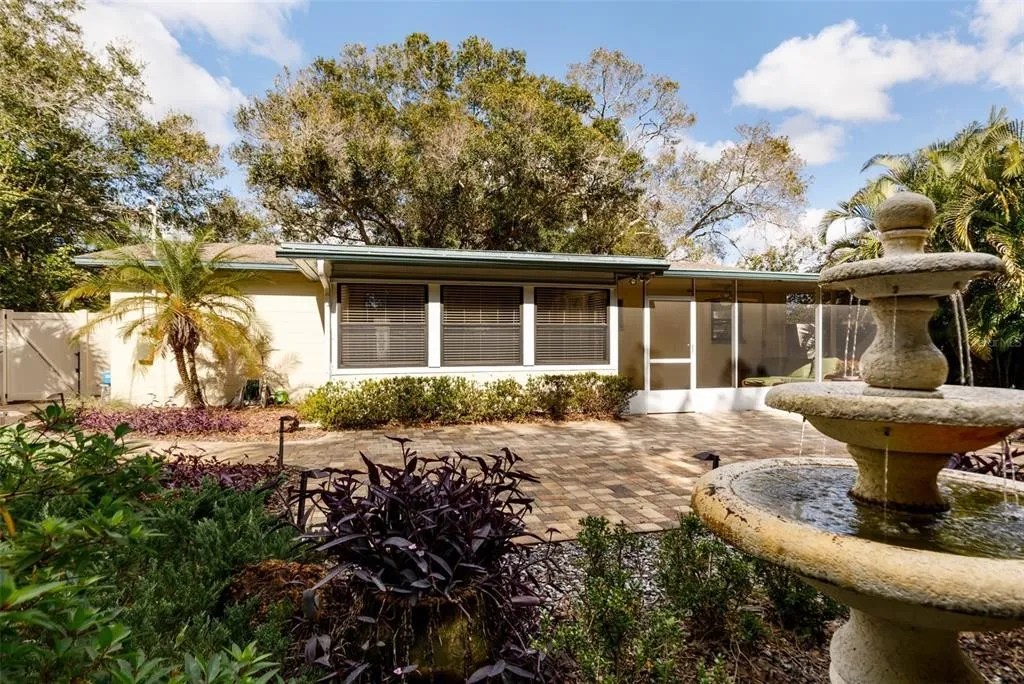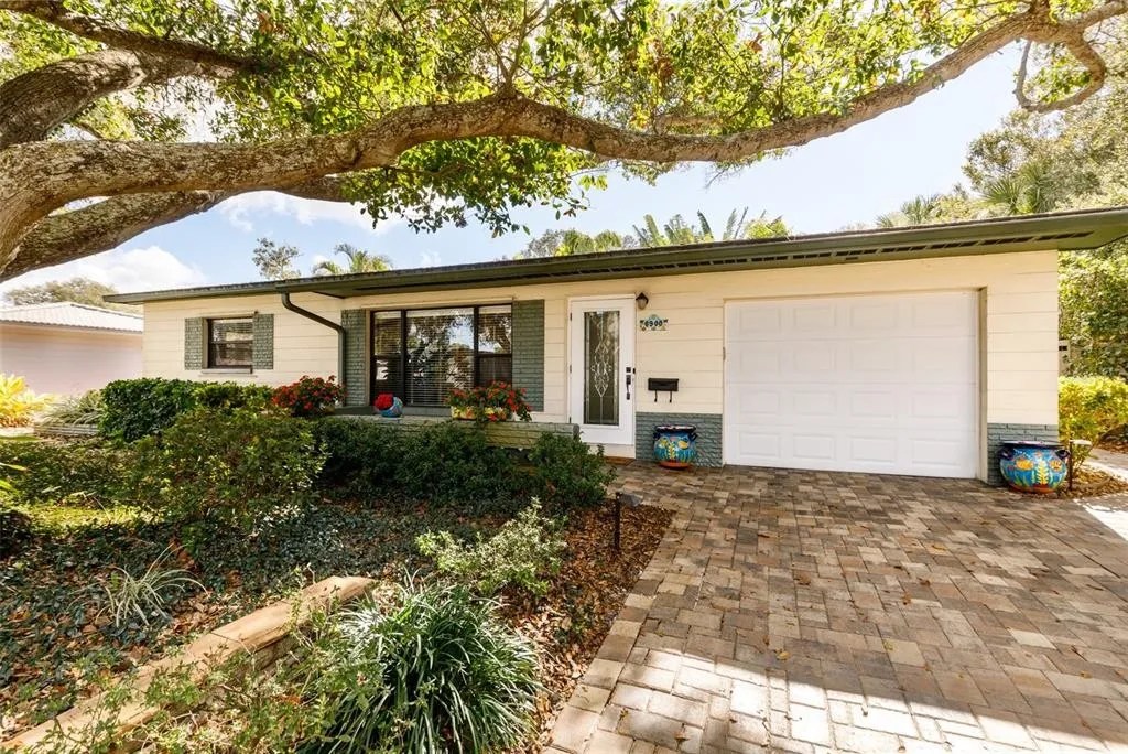 Your place in paradise! Enjoy living in a location that is very convenient to shopping, restaurants, scenic bike & walking trail, #1 rated beaches and in a beautiful neighborhood too. This fantastic updated 2 bedroom/1 bathroom home also has a Florida room, large screened back porch, tropical landscaped back & front yards and a 1-car garage. Relax in your fenced tropical backyard in a hammock on the paver patio while hearing the birds sing & the soft whisper of the fountain nearby or just sit on the front porch and enjoy the quiet neighborhood. Home has a splendid living room with cove ceilings and large windows to view the divine Florida landscaping. A comfortable Florida room looks at the marvelous tropical landscaping in the backyard. Both front and back yards come with nighttime landscape lighting that’s very picturesque. The grand screened back porch will give you a place to unwind while feeling the sea breeze. Updated kitchen has plenty of cabinet space and a pass through to the Florida room. Prime laminate flooring throughout the house except for the Florida room and the updated bathroom. The meticulous garage has an epoxy floor, storage loft, washer/dryer, washtub and a paver driveway. Side garage door opens to a paver walkway to the front and back yards and enjoy extra storage with the Wally Watt shed. This solid block home has hurricane panels for all the windows and the back door. Other outside doors including the garage are hurricane rated which qualifies for the discount on homeowners insurance. A Simplisafe security system will also convey. Property has a irrigation system and a well pump to save money. Rain gutters on front & back of home. As mentioned location is key for this property. The Pinellas Trail is close by and great for taking a stroll or decompress with a scenic bike ride. There’s a city bus stop nearby. Our #1 rated St Pete Beach on the Gulf of Mexico is only a 12 minute drive. Downtown St Petersburg with its unique restaurants, world class renowned museums & new pier is only 20 min away, Artsy Gulfport on Boca Ciega Bay is 13 min, Ft Desoto Park with its 1, 136 acres of pure bliss is only 30 min, 26 min to Tampa International Airport. Come see your place in paradise!