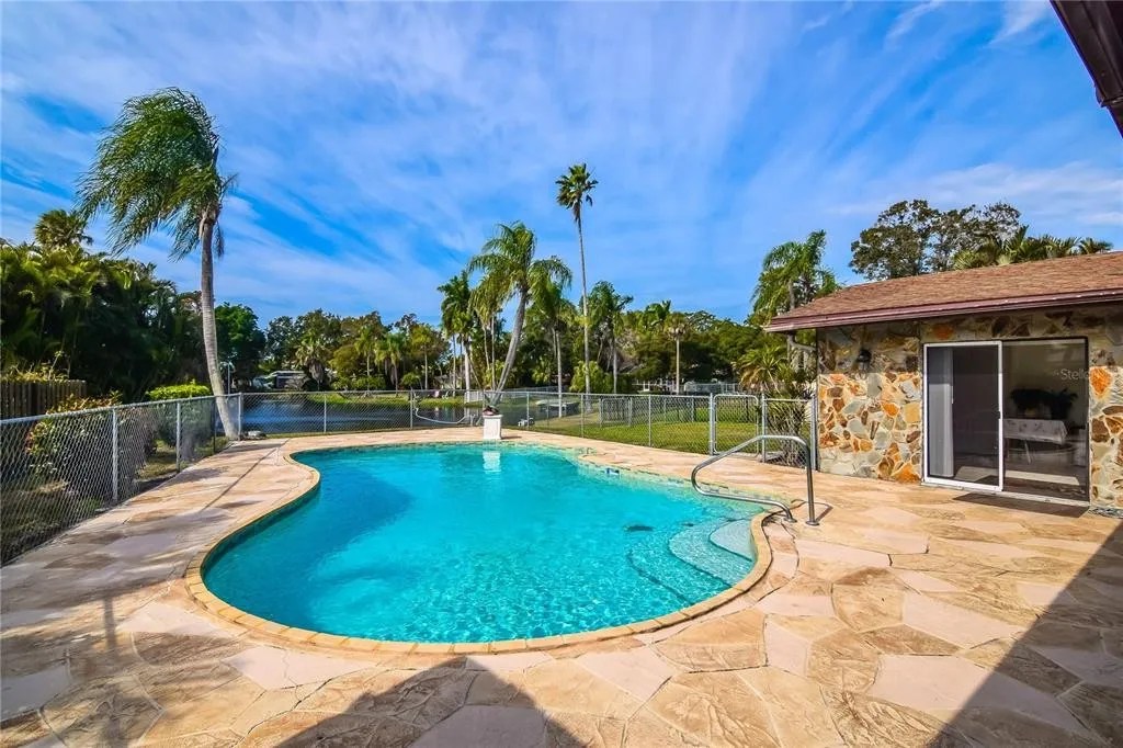 BIKE TO THE BEACH AND SEMINOLE CITY CENTER FROM THIS FABULOUS 4BR/2BA POOL HOME IN THE COVETED OAKHURST SHORES NEIGHBORHOOD OF SEMINOLE! With some TLC and updating, this can easily be your dream home! Situated on a large lot overlooking a spring-fed pond, this block home with a circular driveway has lovely curb appeal. Step inside and enjoy easy-to-maintain tile flooring throughout the main living areas, including a family room, living/dining room area, and well-appointed kitchen with a convenient breakfast bar and pass-through window to the Florida room. The split bedroom floor plan features a private master suite with a walk-in shower in the master bath, walk-in closet, and sliding doors to the Florida room. There are 3 more bedrooms, one currently equipped with a full kitchen with sliding doors to the pool, ideal for a mother-in-law suite, guests, or conversion back to a bedroom or home office. The outdoor space is perfect for entertaining, with a gorgeous deep water swimming pool overlooking the tropical landscaping and tranquil pond/fountain views. Other great features of this home include newer HVAC (2016), a spacious 2-car garage, large interior laundry room, and new pool pump and pipes (2021). Oakhurst Shores is known for NEVER having flooded and is just minutes from the Madeira Beach Publix, shopping, restaurants, and more! Book an appointment to see this home today!