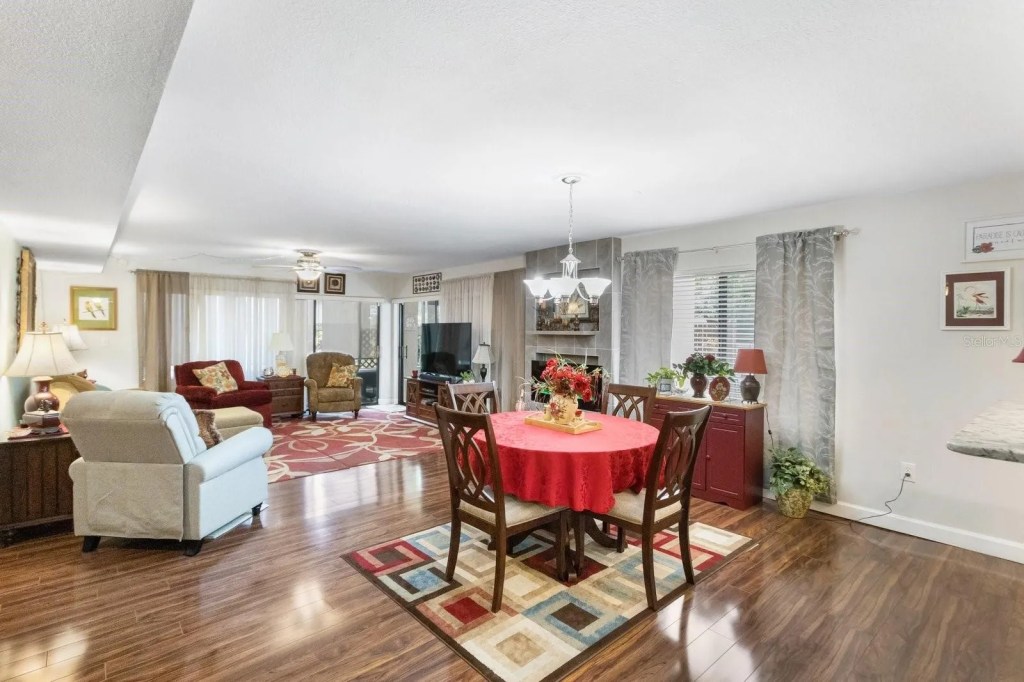 This one has it all! Great location! Golf course community! Ground floor unit! Covered parking! Updated and spacious! Don’t miss this inviting and well appointed 2 bedroom, 2 bath condo in sought after Forest brook community adjacent to the beautiful East Bay country club. Updates and upgrades include: Updated spacious baths! Updated kitchen including tray ceiling with recessed LED lighting, wood cabinets with soft close drawers, glass tile backsplash and gorgeous Delicatus granite countertops, state of the art appliances and porcelain tile floor. Kitchen also has tons of storage with large closet pantry and built in seating with storage! Owners’ suite with extra 60 sq ft perfect for reading nook or office, ensuite bath with dual sinks and a spacious walk-in closet. The great room is the perfect space to relax or to entertain with wood laminate floors, electric fireplace, exquisite wet bar and sliders leading to the spacious breezy wrap around screened lanai with exit to the private open air pavered patio with lovely landscaping! The guest room is also spacious and there is a very inviting updated guest bath! Inside utilities! Newer HVAC system! 50 gal Rheem water heater with auto shut off and warranty- 2 years old! New ceiling fans, interior 6 panel doors! Tons of storage! Low monthly fee includes water, sewer, garbage, internet, cable and exterior maintenance and a sparkling huge community pool! Gated back exit directly to the East Bay country club and golf course. Hurry before it’s gone! Paradise found!