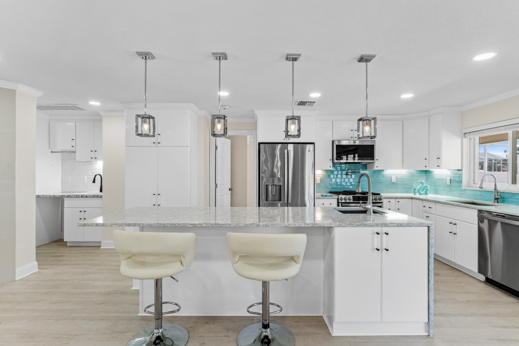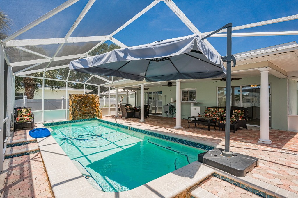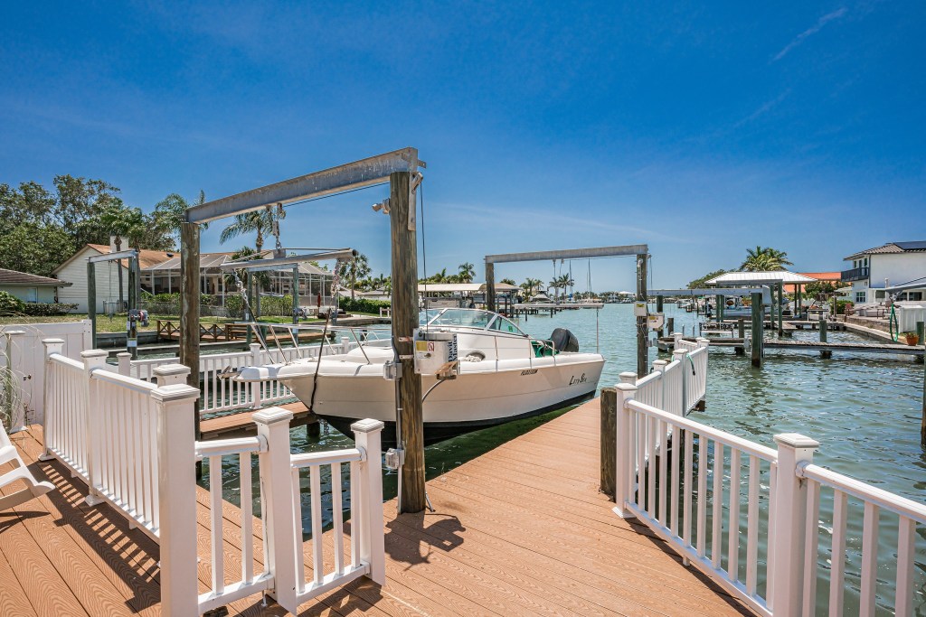 PRICE REDUCED! Come and see this beautifully updated WATERFRONT POOL HOME in sought after neighborhood of Harbor Hills. SINGLE STORY all on one level. (which means NO stairs) Light, Bright, Open, Modern, Elegant are just a few words to describe this beautiful home. This home features 4 bedrooms/4 En-suite bathrooms. When you enter in through the stained-glass double door entry you will automatically notice the Modern Open Floor Plan that is laid out with the family room, Electric Fireplace, newly added WETBAR for great entertaining, not to mention the kitchen that features a large Island prep sink, electric and all NEW appliances. Large Dining area overlooks back patio and the Intracoastal waterway. The Master Bedroom is very spacious with a completely redone En suite Bathroom and walk in closet. The Master bedroom also has new double doors that will bring you to the large Park Like open yard(OVERSIZED LOT). Each bedroom features its own bathroom. 4th Bedroom is set up as a separate-Private In-Law suite with a full kitchen, Full Bathroom and Laundry that opens up to the lanai and pool area. HEATED SALTWATER POOL with WATERFALL can be used ALL YEAR Round (has just been REMARCITED) and is completely screened in. There is also a 2nd Inside laundry room which is conveniently located next to the Kitchen. Dock has been redone with all composite decking. Boat Davits have all new motors, pullies, gears and electric. When sitting on the dock you will enjoy not only that great water view of the intracoastal but all the wildlife such as dolphins, manatees and different species of birds. BOATERs will love the location as you will be out in the open water in minutes. Custom outdoor security Lighting and Alarm system. This large double lot also has room to park boats or RV’s. Circular Driveway in front. Now let’s talk LOCATION!!! Near Indian Rocks Beach, World Famous Clearwater Beach and other great beaches in our area for you to choose. For the person that loves to dine out you will find many local restaurants as well as fine boutiques and shops. For the golfer you will not only be near the Famous Belleair Country Club and Pelican Country Club but many other Golf courses in the area as well. There is something for everyone. You will find this home easy to LOVE. Seller is being transferred. SELLER MOTIVATED. MAKE YOUR OFFER TODAY!