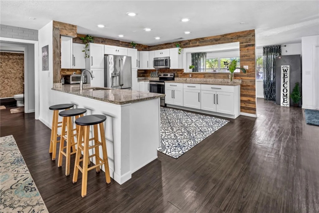 DON’T MISS THIS RARE OPPORTUNITY TO HAVE IT ALL: THE LOCATION, THE LOT SIZE, THE SQUARE FOOTAGE, AND THE POOL! As you pull up to this amazing pool home you’ll be greeted by the tropical palms and double-door entryway. Once inside, the home feels open, light, and bright with fresh new white paint, white cabinetry, granite countertops, and vinyl plank flooring throughout. Off the entry, there is a bonus room that makes a great office or den, an open kitchen/dining/living room combo overlooking the refreshing pool, and a massive backyard with over a quarter of an acre of land! The split bedroom floor plan offers the ability to have separate master suites with their own private bathrooms. Each bedroom has walk-in closets and plenty of storage space! Outside the back sliding doors is the screened patio with even more space for family and friends to gather or entertain. An 8ft deep pool is a unique find in this area as well as the yard with over a quarter of an acre for the kids and pets to enjoy! The large shed has electricity and a new roof in 2023, it’s 8×20′ (160SF) and could be used as an artist studio, office, workshop, or she-shed! The A/C is only 5 years old, the roof is 2012, the water heater is 2 yrs old. Walking distance to Seminole High School, the new Clear Sky Cafe, close to grocery stores, the boat ramp, and just over the bridge to the beach! One of the highest elevations in Pinellas County, this is a non-flood zone, non-evac zone. This one won’t last!
